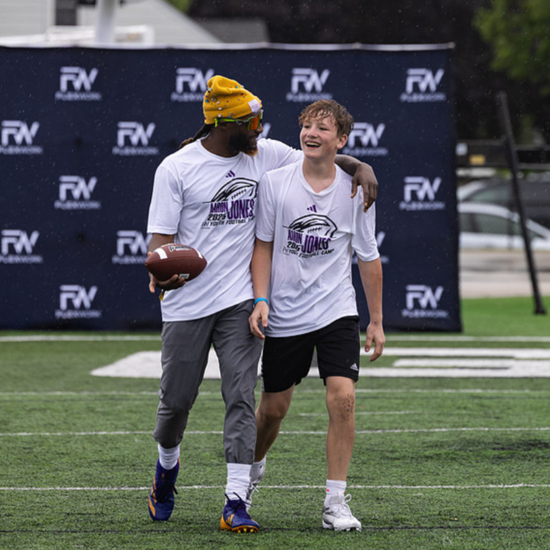 Over the course of the day, Minnesota star running back Aaron Jones and our FlexWork Sports coaches will guide your child through an exciting, high-energy day designed around fun and unforgettable experiences on the field. Camp activities include interactive sessions, skill stations, and unique opportunities to connect with our athletes in ways that make the game come alive.