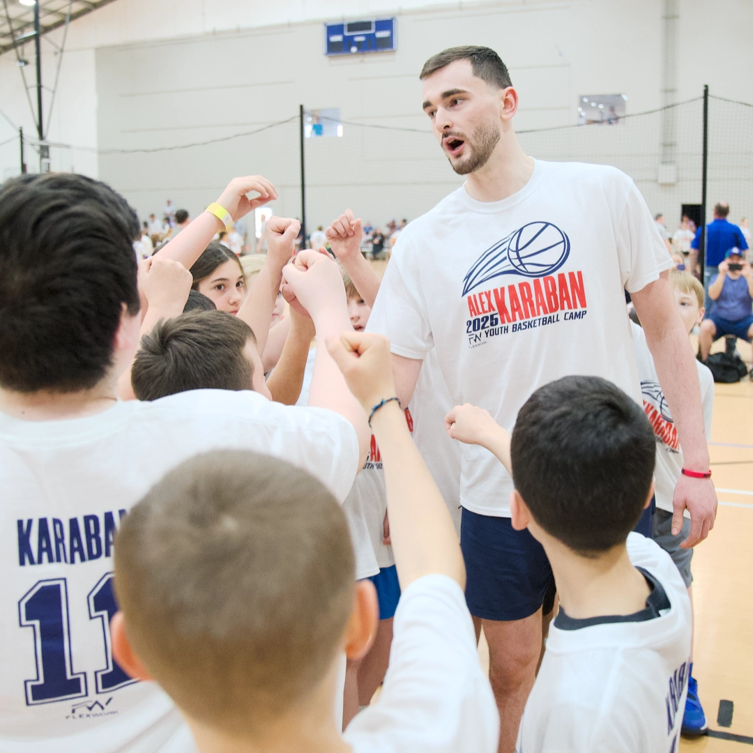 Over the course of the day, Connecticut Forward Alex Karaban and our FlexWork Sports coaches will guide your child through an exciting, high-energy day designed around fun and unforgettable experiences on the court. Camp activities include interactive sessions, skill stations, and unique opportunities to connect with our athletes in ways that make the game come alive.