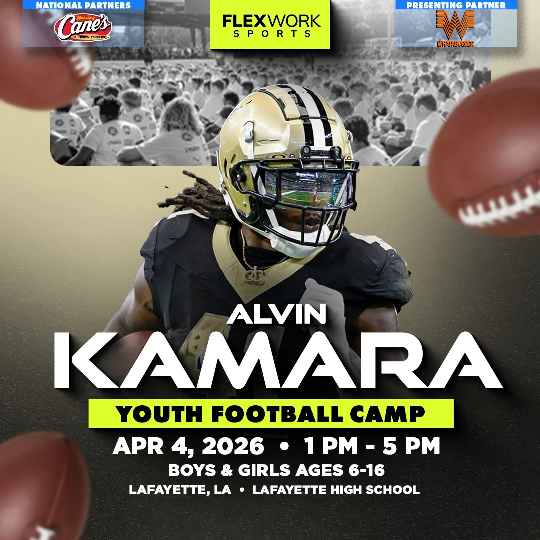 Over the course of the day, New Orleans star running back Alvin Kamara and our FlexWork Sports coaches will guide your child through an exciting, high-energy day designed around fun and unforgettable experiences on the field. Camp activities include interactive sessions, skill stations, and unique opportunities to connect with our athletes in ways that make the game come alive.