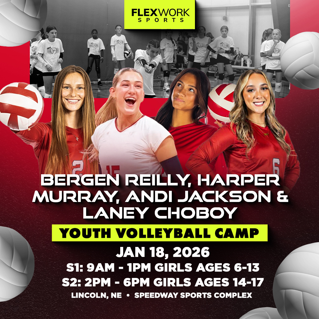 Over the course of the day, Nebraska star players Bergen Reilly, Harper Murray, Andi Jackson & Laney Choboy along with our FlexWork Sports coaches will guide your child through an exciting, high-energy day designed around fun and unforgettable experiences on the court. Camp activities include interactive sessions, skill stations, and unique opportunities to connect with our athletes in ways that make the game come alive.