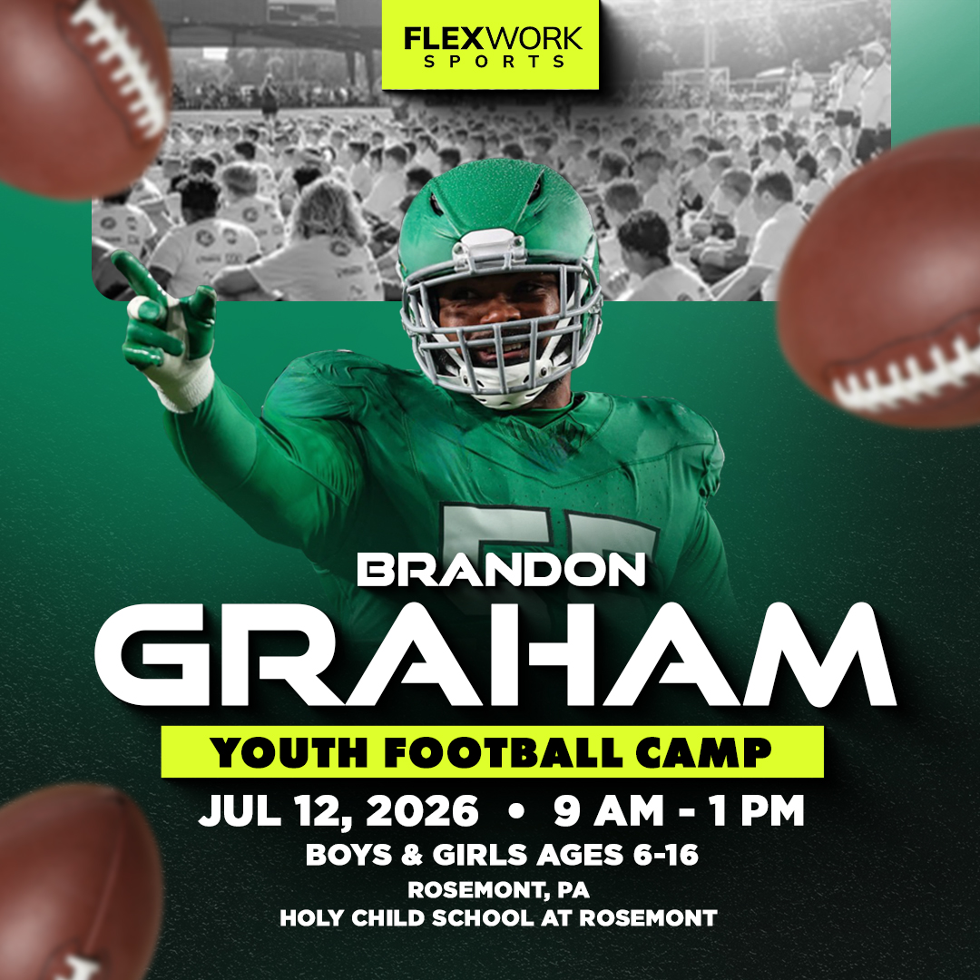 Over the course of the day, Philadelphia great DE Brandon Graham and our FlexWork Sports coaches will guide your child through an exciting, high-energy day designed around fun and unforgettable experiences on the field. Camp activities include interactive sessions, skill stations, and unique opportunities to connect with our athletes in ways that make the game come alive.