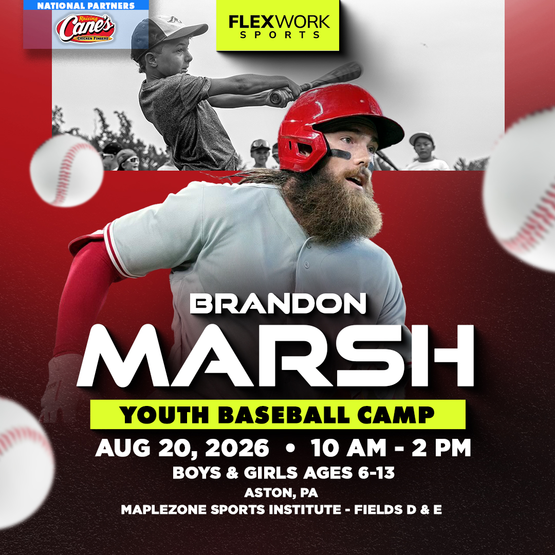 Over the course of the day, Philadelphia star Brandon Marsh and our FlexWork Sports coaches will guide your child through an exciting, high-energy day designed around fun and unforgettable experiences on the field. Camp activities include interactive sessions, skill stations, and unique opportunities to connect with our athletes in ways that make the game come alive.