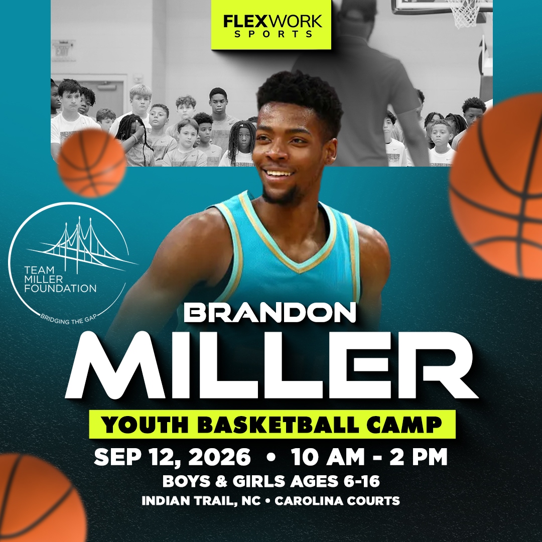 Over the course of the day, Charolette star forward Brandon Miller and our FlexWork Sports coaches will guide your child through an exciting, high-energy day designed around fun and unforgettable experiences on the court. Camp activities include interactive sessions, skill stations, and unique opportunities to connect with our athletes in ways that make the game come alive.