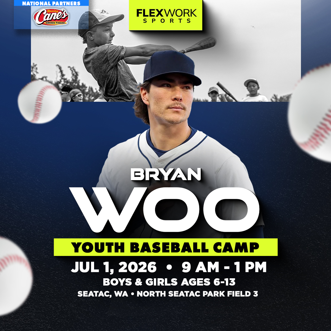 Over the course of the day, Seattle star Pitcher Bryan Woo and our FlexWork Sports coaches will guide your child through an exciting, high-energy day designed around fun and unforgettable experiences on the field. Camp activities include interactive sessions, skill stations, and unique opportunities to connect with our athletes in ways that make the game come alive.