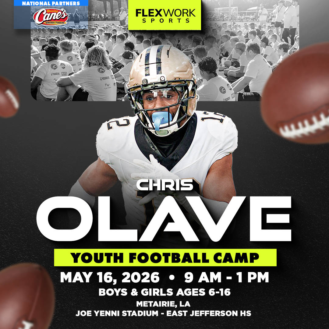 Over the course of the day, New Orleans star WR Chris Olave and our FlexWork Sports coaches will guide your child through an exciting, high-energy day designed around fun and unforgettable experiences on the field. Camp activities include interactive sessions, skill stations, and unique opportunities to connect with our athletes in ways that make the game come alive.