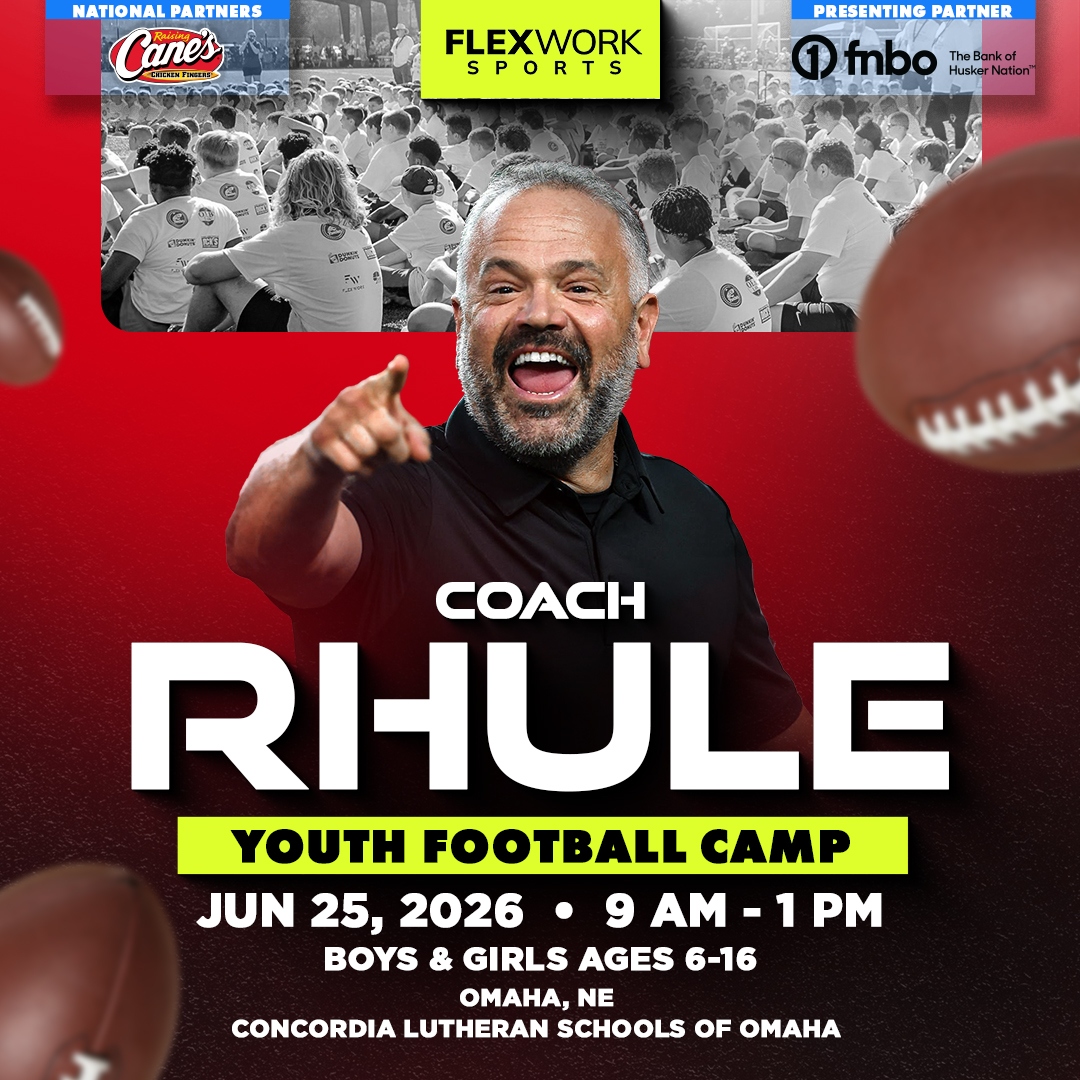 Over the course of the day, Nebraska Head Coach Matt Rhule and our FlexWork Sports coaches will guide your child through an exciting, high-energy day designed around fun and unforgettable experiences on the field. Camp activities include interactive sessions, skill stations, and unique opportunities to connect with our athletes in ways that make the game come alive.