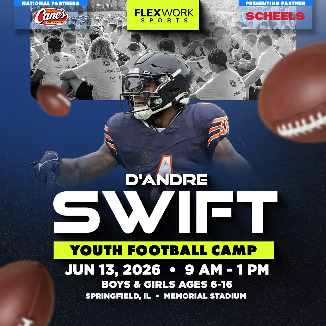 Over the course of the day, Chicago RB D'Andre Swift and our FlexWork Sports coaches will guide your child through an exciting, high-energy day designed around fun and unforgettable experiences on the field. Camp activities include interactive sessions, skill stations, and unique opportunities to connect with our athletes in ways that make the game come alive.