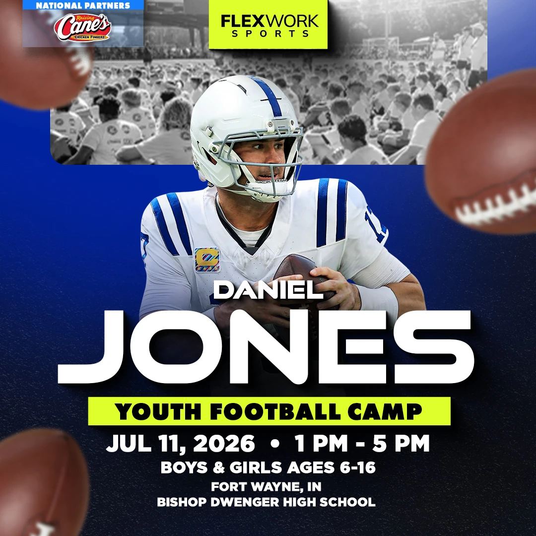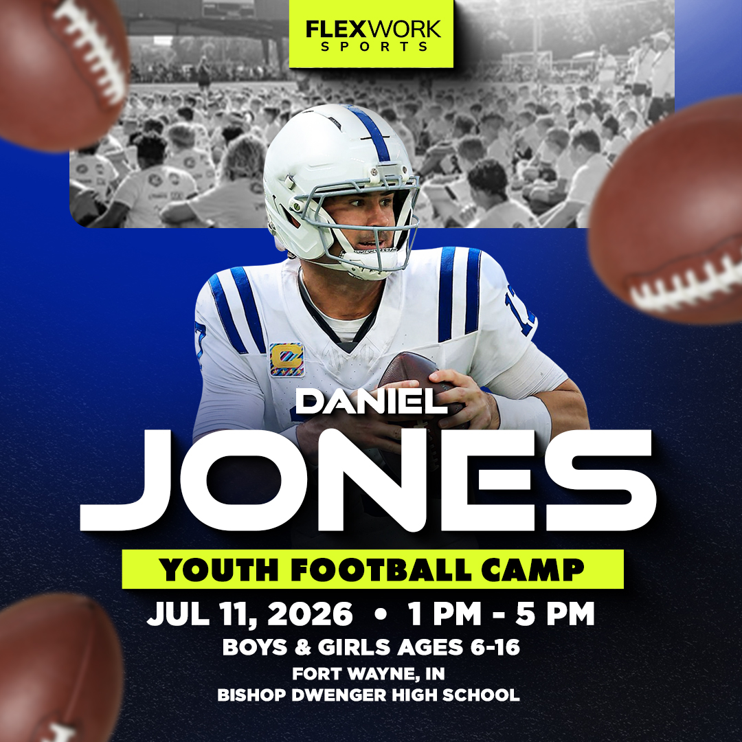Over the course of the day, Indianapolis star QB Daniel Jones and our FlexWork Sports coaches will guide your child through an exciting, high-energy day designed around fun and unforgettable experiences on the field. Camp activities include interactive sessions, skill stations, and unique opportunities to connect with our athletes in ways that make the game come alive.