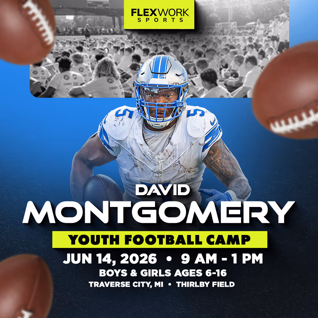Over the course of the day, Detroit star RB David Montgomery and our FlexWork Sports coaches will guide your child through an exciting, high-energy day designed around fun and unforgettable experiences on the field. Camp activities include interactive sessions, skill stations, and unique opportunities to connect with our athletes in ways that make the game come alive.