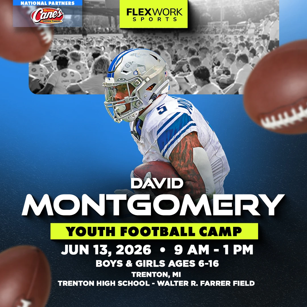 Over the course of the day, Detroit star RB David Montgomery and our FlexWork Sports coaches will guide your child through an exciting, high-energy day designed around fun and unforgettable experiences on the field. Camp activities include interactive sessions, skill stations, and unique opportunities to connect with our athletes in ways that make the game come alive.