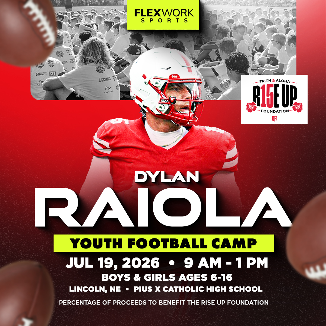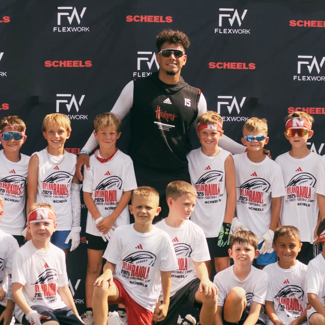 Over the course of the day, Nebraska star QB Dylan Raiola and our FlexWork Sports coaches will guide your child through an exciting, high-energy day designed around fun and unforgettable experiences on the field. Camp activities include interactive sessions, skill stations, and unique opportunities to connect with our athletes in ways that make the game come alive.