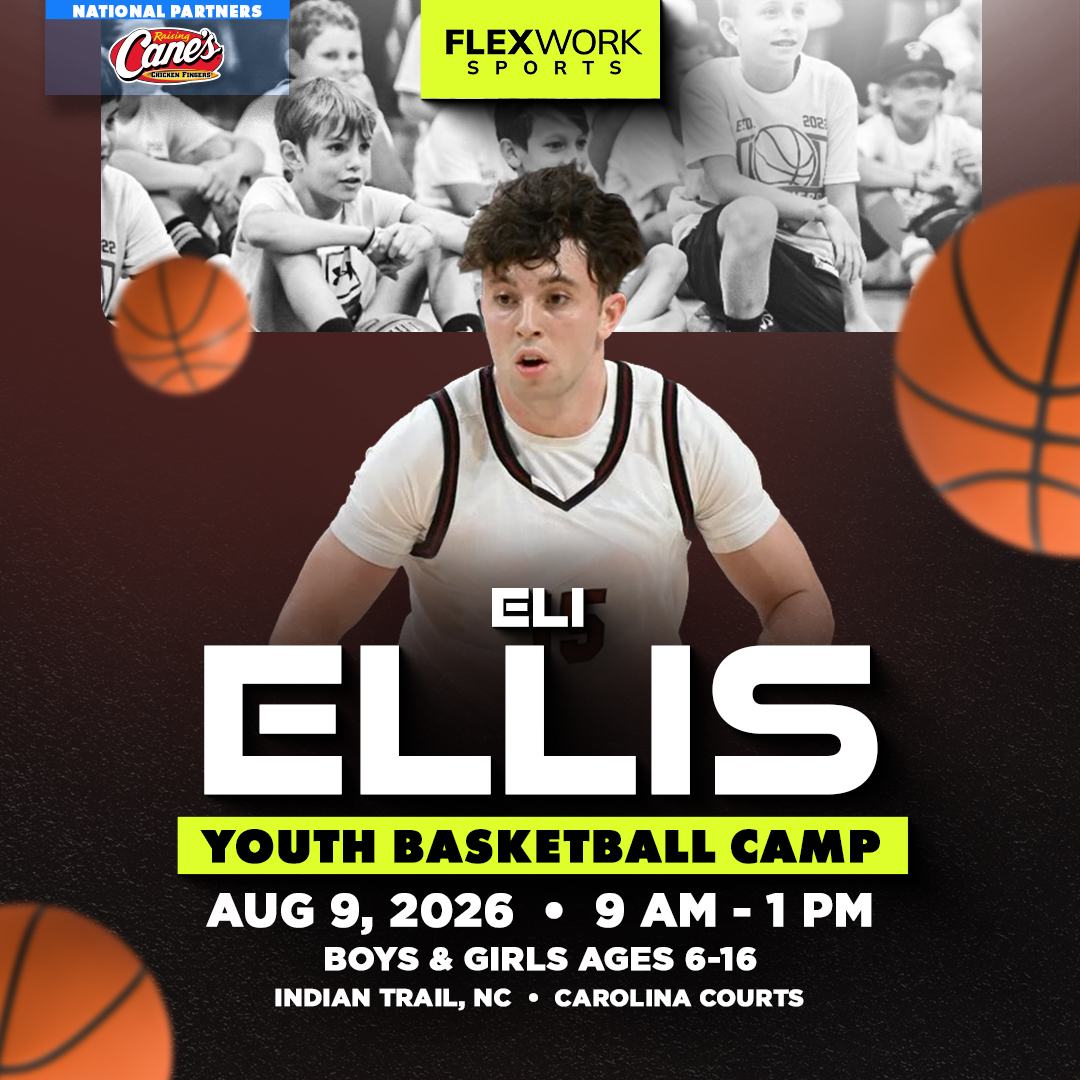 Over the course of the day, South Carolina star Eli Ellis and our FlexWork Sports coaches will guide your child through an exciting, high-energy day designed around fun and unforgettable experiences on the court. Camp activities include interactive sessions, skill stations, and unique opportunities to connect with our athletes in ways that make the game come alive.