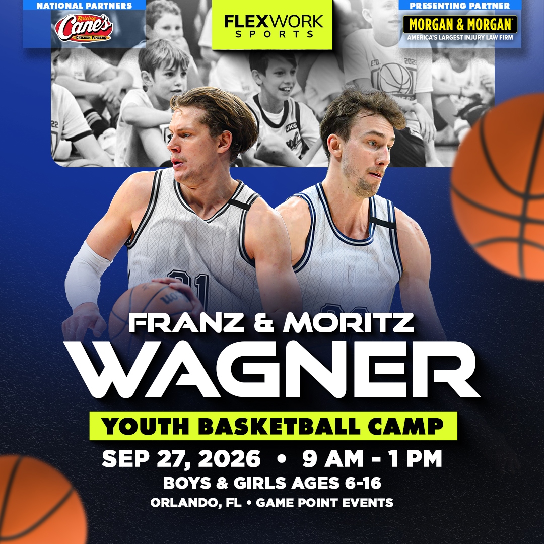 Over the course of the day, Orlando Magic stars Franz & Moritz Wagner and our FlexWork Sports coaches will guide your child through an exciting, high-energy day designed around fun and unforgettable experiences on the court. Camp activities include interactive sessions, skill stations, and unique opportunities to connect with our athletes in ways that make the game come alive.