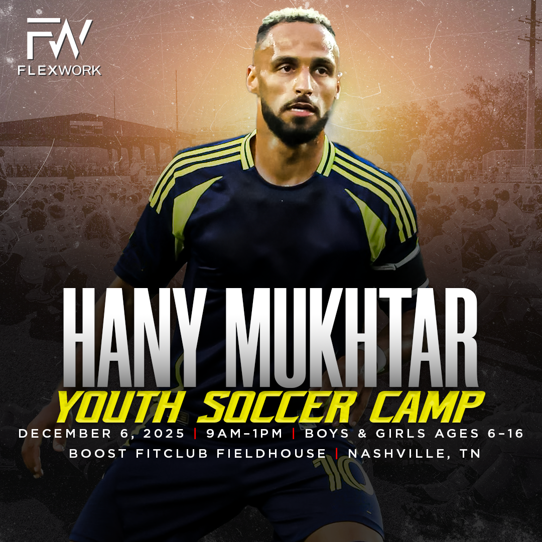 Over the course of the day, Nashville star player Hany Mukhtar and our FlexWork Sports coaches will guide your child through an exciting, high-energy day designed around fun and unforgettable experiences on the field. Camp activities include interactive sessions, skill stations, and unique opportunities to connect with our athletes in ways that make the game come alive.