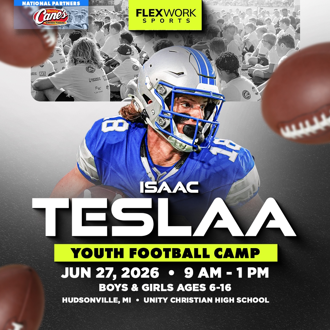 Over the course of the day, Detroit WR Isaac TeSlaa and our FlexWork Sports coaches will guide your child through an exciting, high-energy day designed around fun and unforgettable experiences on the field. Camp activities include interactive sessions, skill stations, and unique opportunities to connect with our athletes in ways that make the game come alive.