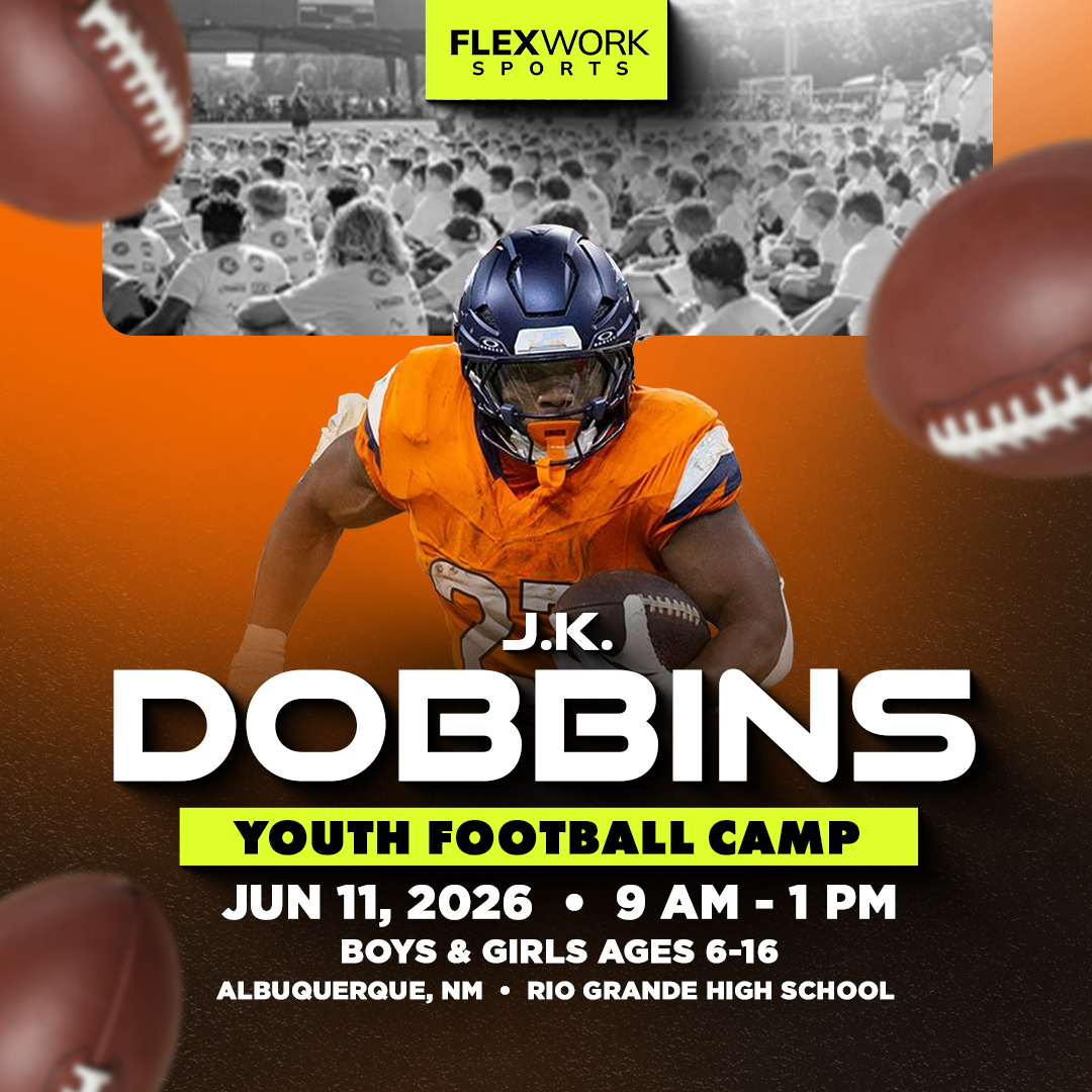 Over the course of the day, Denver star RB J.K. Dobbins and our FlexWork Sports coaches will guide your child through an exciting, high-energy day designed around fun and unforgettable experiences on the field. Camp activities include interactive sessions, skill stations, and unique opportunities to connect with our athletes in ways that make the game come alive.