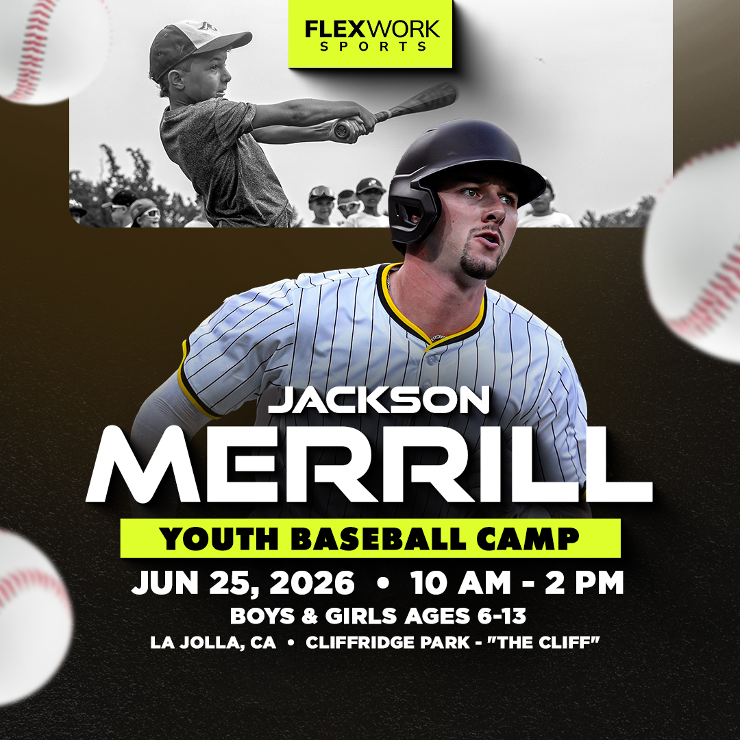 Over the course of the day, San Diego star OF Jackson Merrill and our FlexWork Sports coaches will guide your child through an exciting, high-energy day designed around fun and unforgettable experiences on the field. Camp activities include interactive sessions, skill stations, and unique opportunities to connect with our athletes in ways that make the game come alive.