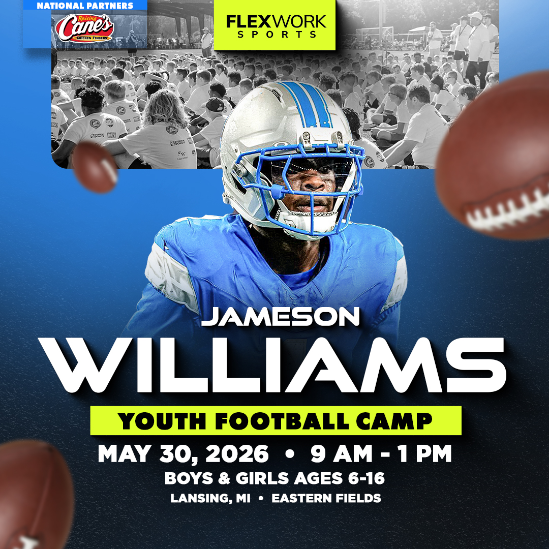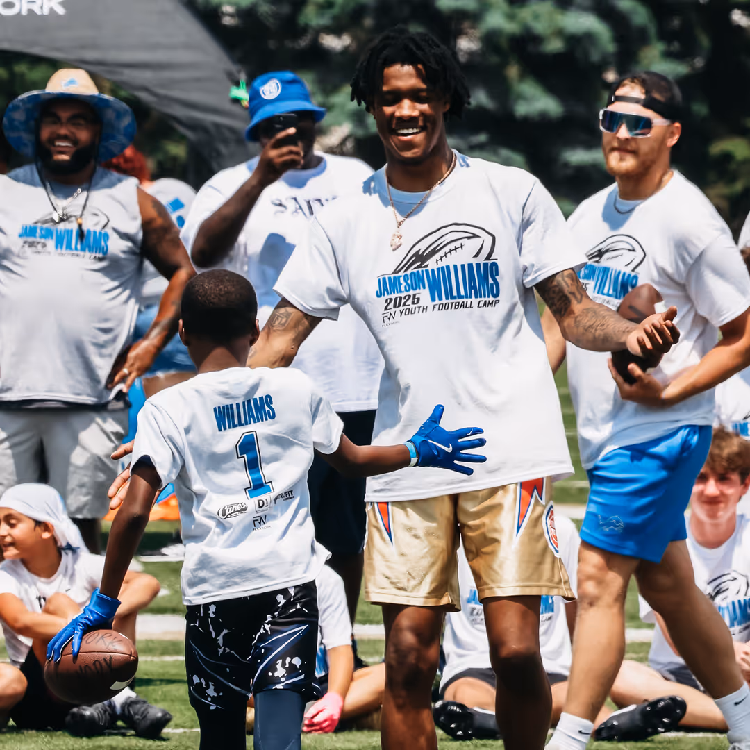Over the course of the day, Detroit WR Jameson Williams and our FlexWork Sports coaches will guide your child through an exciting, high-energy day designed around fun and unforgettable experiences on the field. Camp activities include interactive sessions, skill stations, and unique opportunities to connect with our athletes in ways that make the game come alive.