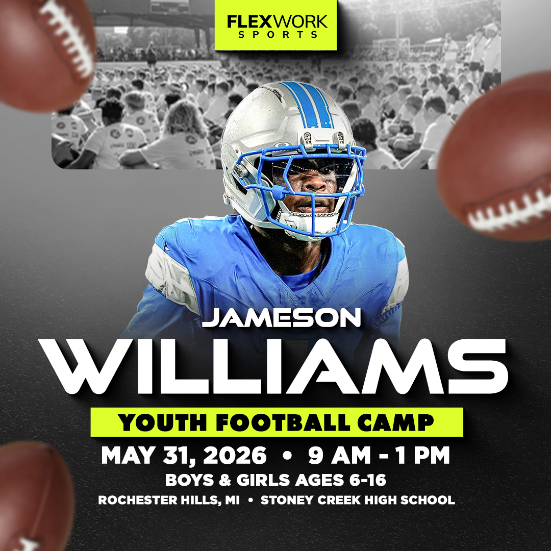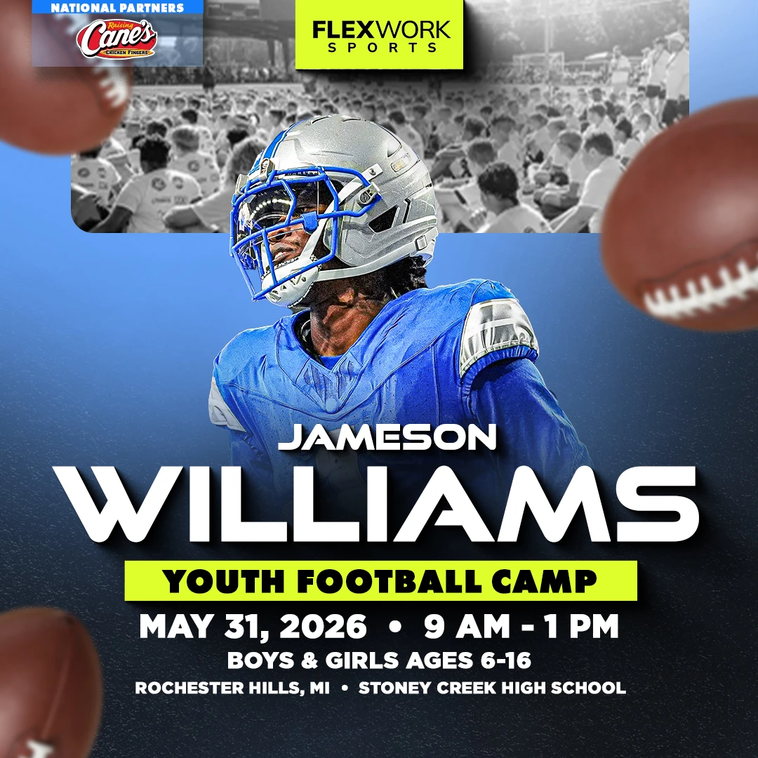 Over the course of the day, Detroit WR Jameson Williams and our FlexWork Sports coaches will guide your child through an exciting, high-energy day designed around fun and unforgettable experiences on the field. Camp activities include interactive sessions, skill stations, and unique opportunities to connect with our athletes in ways that make the game come alive.