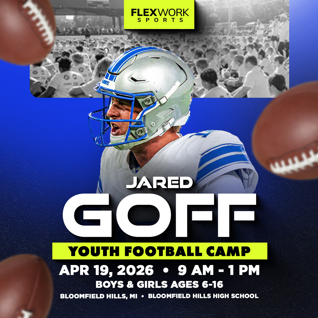 Over the course of the day, Detroit star QB Jared Goff and our FlexWork Sports coaches will guide your child through an exciting, high-energy day designed around fun and unforgettable experiences on the field. Camp activities include interactive sessions, skill stations, and unique opportunities to connect with our athletes in ways that make the game come alive.
