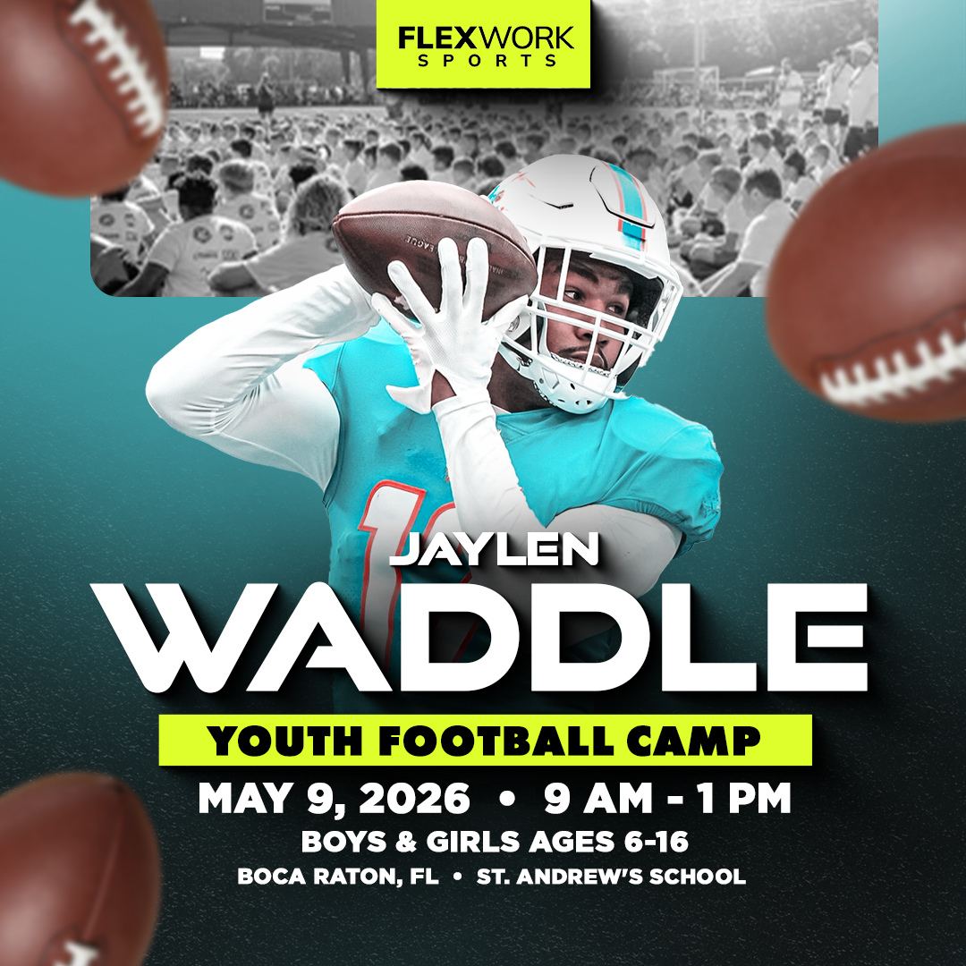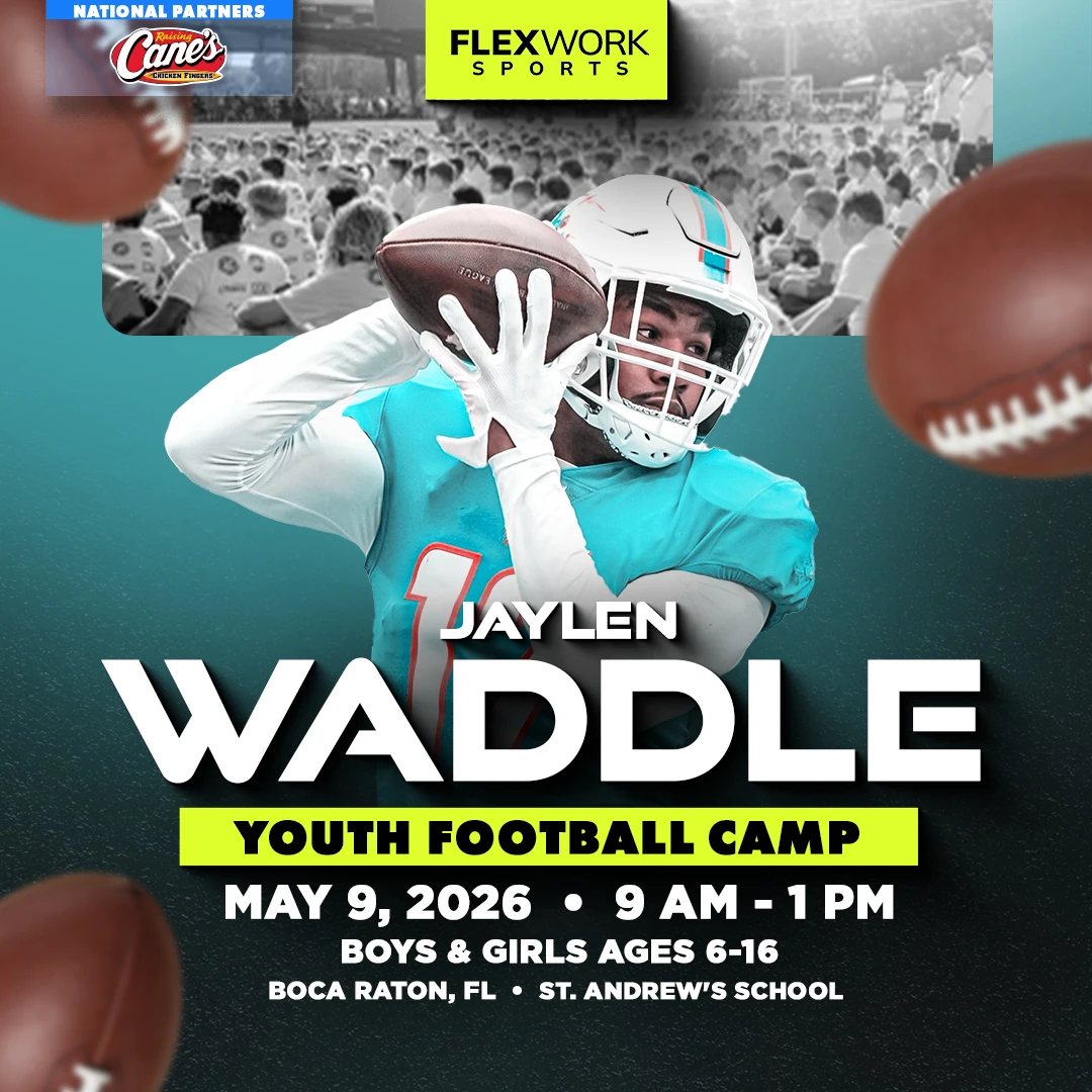 Over the course of the day, Miami star Wide Receiver Jaylen Waddle and our FlexWork Sports coaches will guide your child through an exciting, high-energy day designed around fun and unforgettable experiences on the field. Camp activities include interactive sessions, skill stations, and unique opportunities to connect with our athletes in ways that make the game come alive.