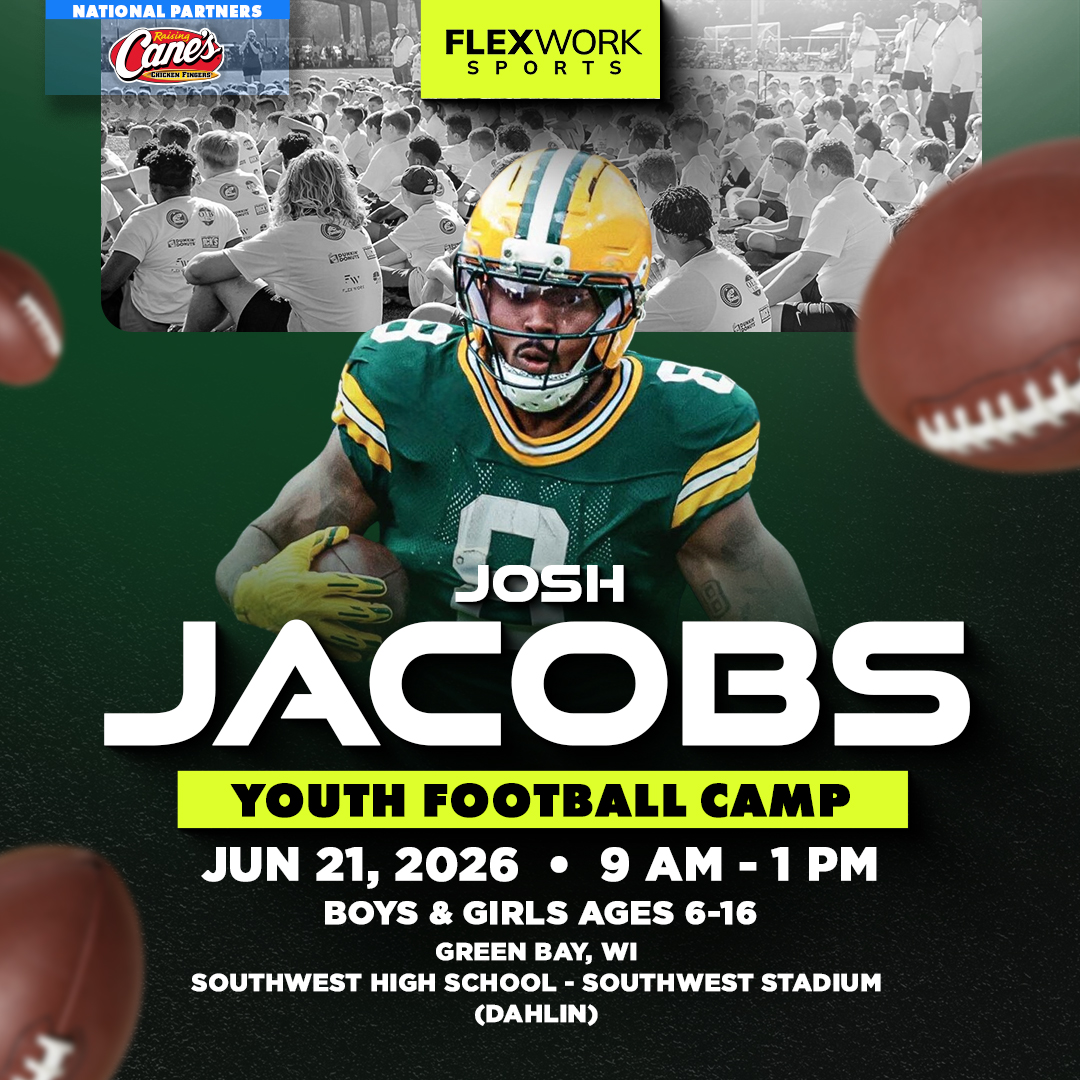 Over the course of the day, Green Bay star RB Josh Jacobs and our FlexWork Sports coaches will guide your child through an exciting, high-energy day designed around fun and unforgettable experiences on the field. Camp activities include interactive sessions, skill stations, and unique opportunities to connect with our athletes in ways that make the game come alive.