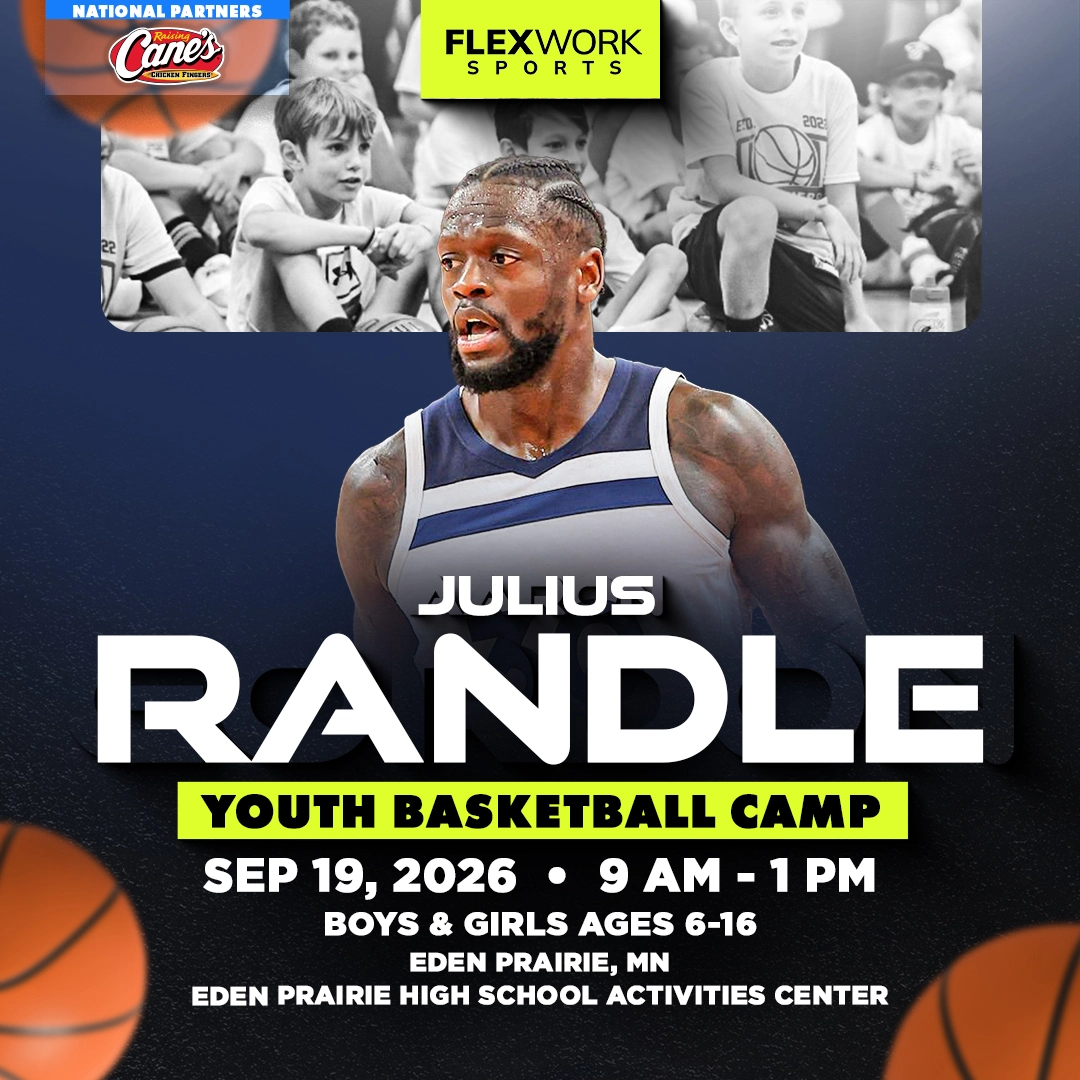 Over the course of the day, Minnesota Forward Julius Randle and our FlexWork Sports coaches will guide your child through an exciting, high-energy day designed around fun and unforgettable experiences on the court. Camp activities include interactive sessions, skill stations, and unique opportunities to connect with our athletes in ways that make the game come alive.