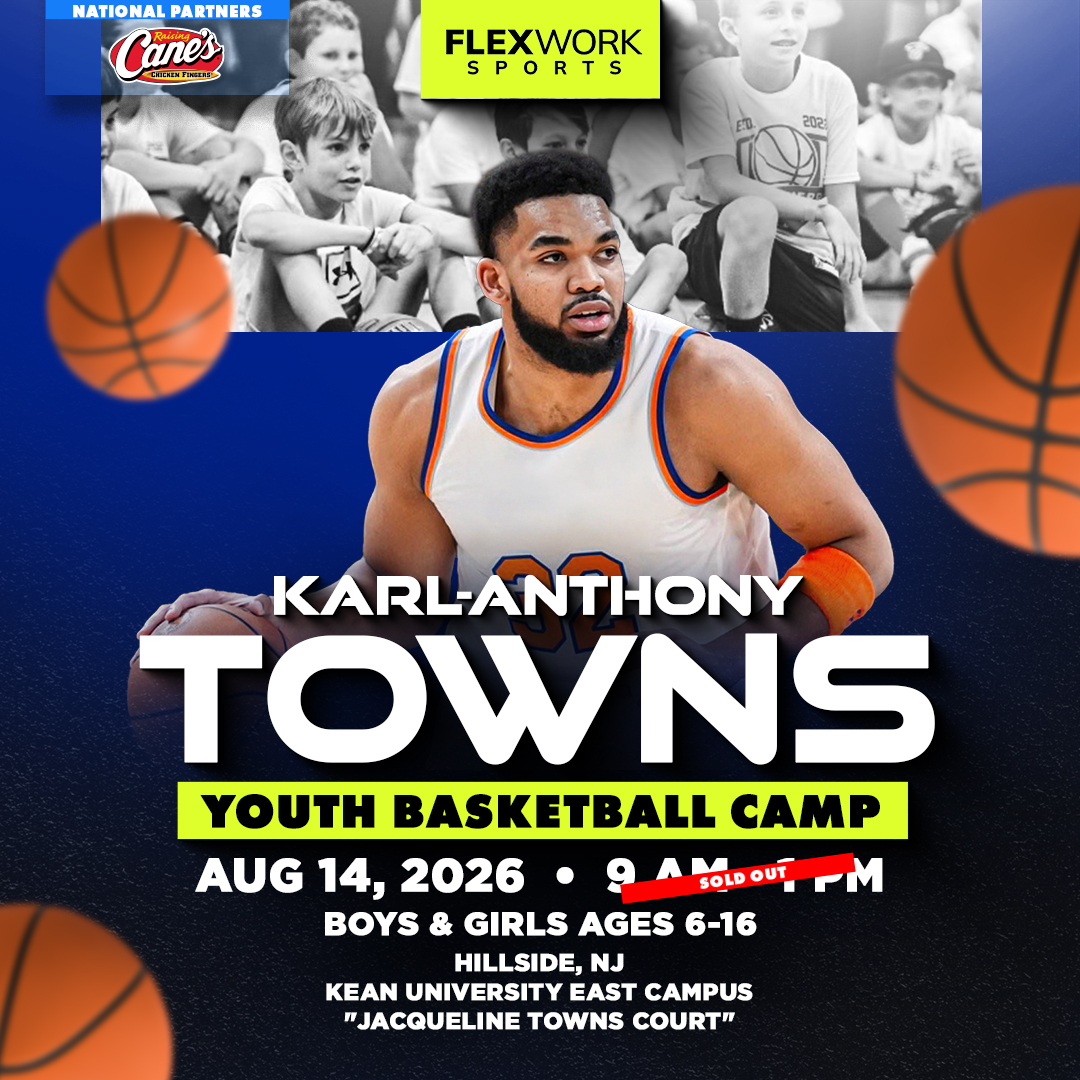 Over the course of the day, New York Star Center Karl-Anthony Towns and our FlexWork Sports coaches will guide your child through an exciting, high-energy day designed around fun and unforgettable experiences on the court. Camp activities include interactive sessions, skill stations, and unique opportunities to connect with our athletes in ways that make the game come alive.