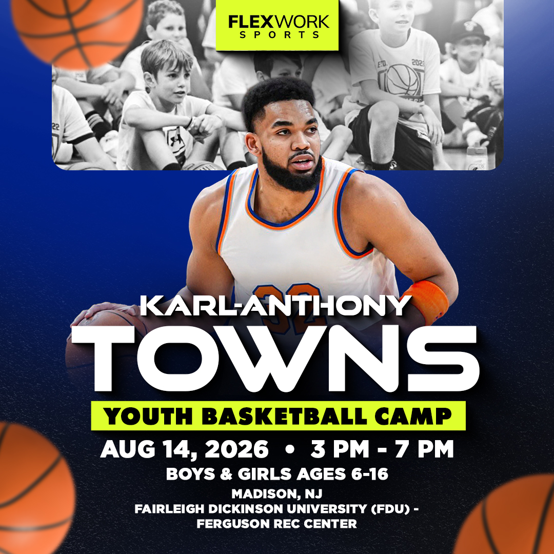Over the course of the day, New York Star Center Karl-Anthony Towns and our FlexWork Sports coaches will guide your child through an exciting, high-energy day designed around fun and unforgettable experiences on the court. Camp activities include interactive sessions, skill stations, and unique opportunities to connect with our athletes in ways that make the game come alive.