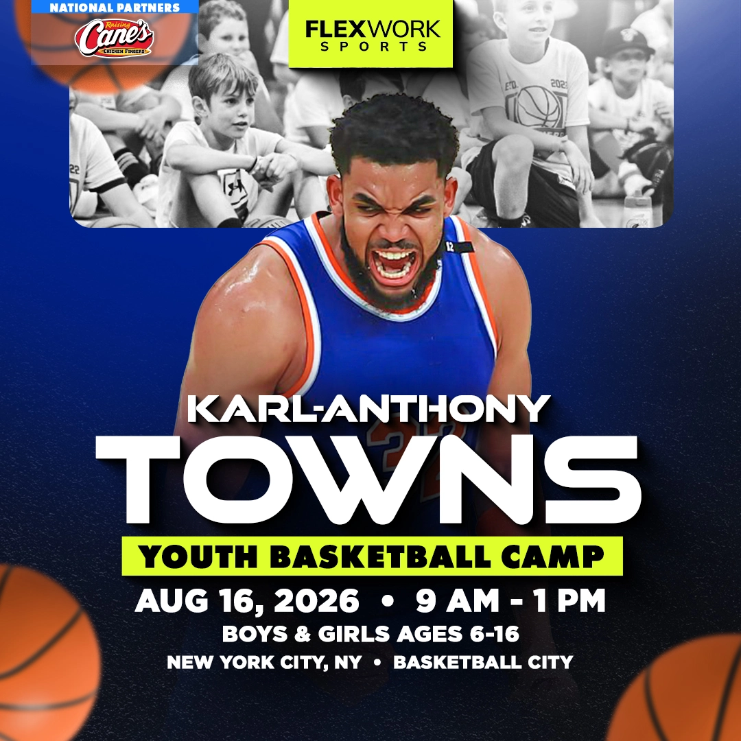Over the course of the day, New York Star Center Karl-Anthony Towns and our FlexWork Sports coaches will guide your child through an exciting, high-energy day designed around fun and unforgettable experiences on the court. Camp activities include interactive sessions, skill stations, and unique opportunities to connect with our athletes in ways that make the game come alive.