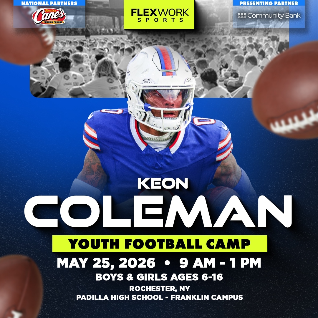 Over the course of the day, Buffalo star WR Keon Coleman and our FlexWork Sports coaches will guide your child through an exciting, high-energy day designed around fun and unforgettable experiences on the field. Camp activities include interactive sessions, skill stations, and unique opportunities to connect with our athletes in ways that make the game come alive.