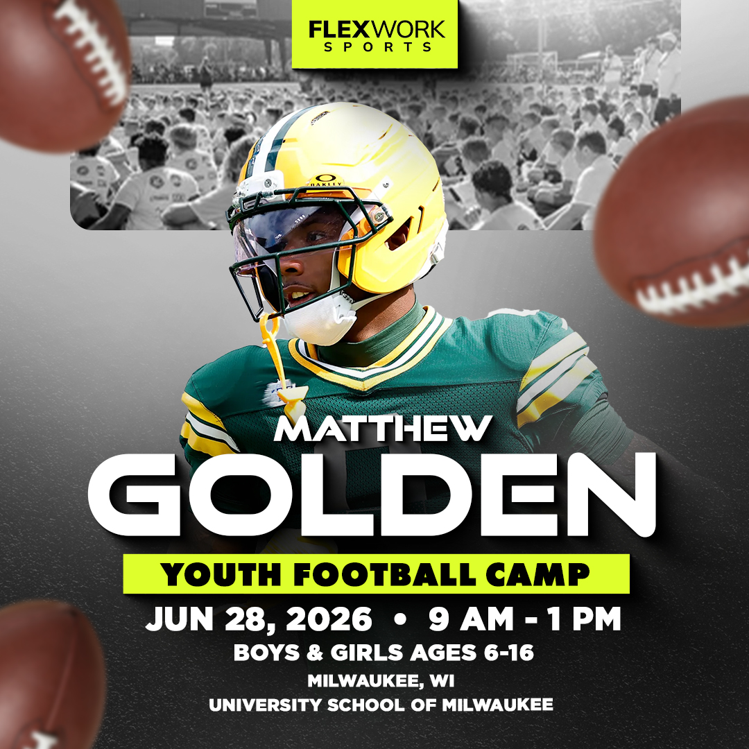 Over the course of the day, Green Bay star WR Matthew Golden and our FlexWork Sports coaches will guide your child through an exciting, high-energy day designed around fun and unforgettable experiences on the field. Camp activities include interactive sessions, skill stations, and unique opportunities to connect with our athletes in ways that make the game come alive.