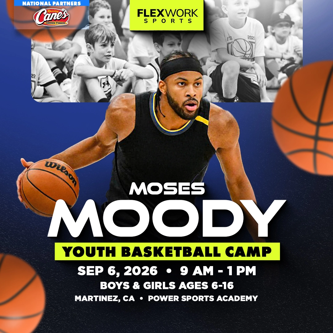 Over the course of the day, Golden State Guard Moses Moody and our FlexWork Sports coaches will guide your child through an exciting, high-energy day designed around fun and unforgettable experiences on the court. Camp activities include interactive sessions, skill stations, and unique opportunities to connect with our athletes in ways that make the game come alive.