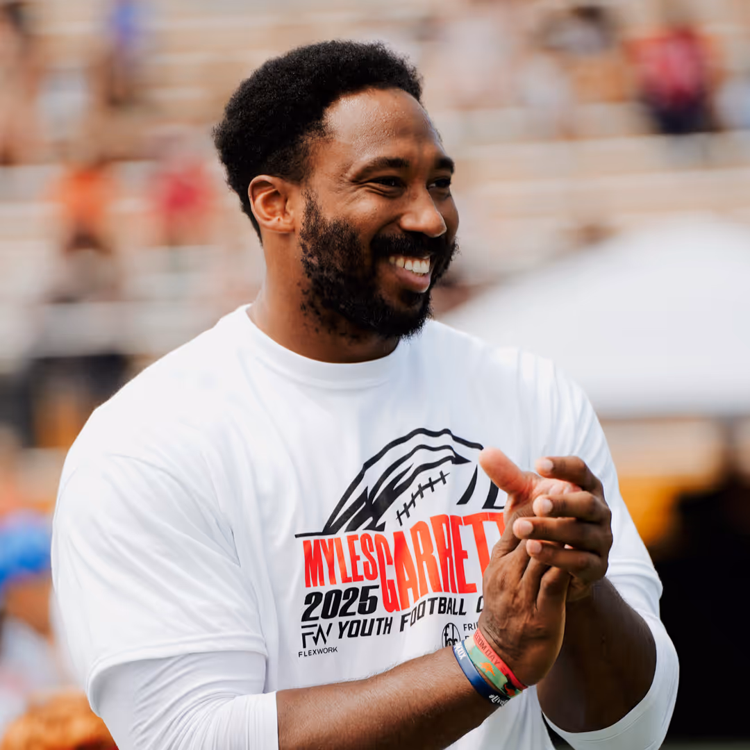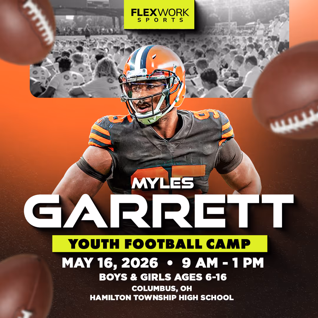 Over the course of the day, Cleveland star DE Myles Garrett and our FlexWork Sports coaches will guide your child through an exciting, high-energy day designed around fun and unforgettable experiences on the field. Camp activities include interactive sessions, skill stations, and unique opportunities to connect with our athletes in ways that make the game come alive.