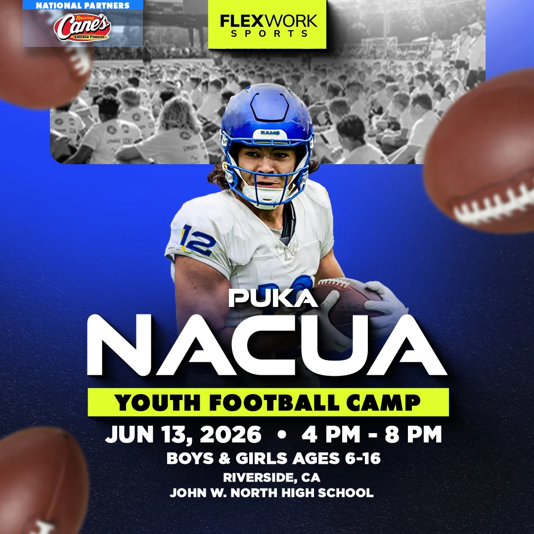 Over the course of the day, Los Angeles star wide receiver Puka Nacua and our FlexWork Sports coaches will guide your child through an exciting, high-energy day designed around fun and unforgettable experiences on the field. Camp activities include interactive sessions, skill stations, and unique opportunities to connect with our athletes in ways that make the game come alive.