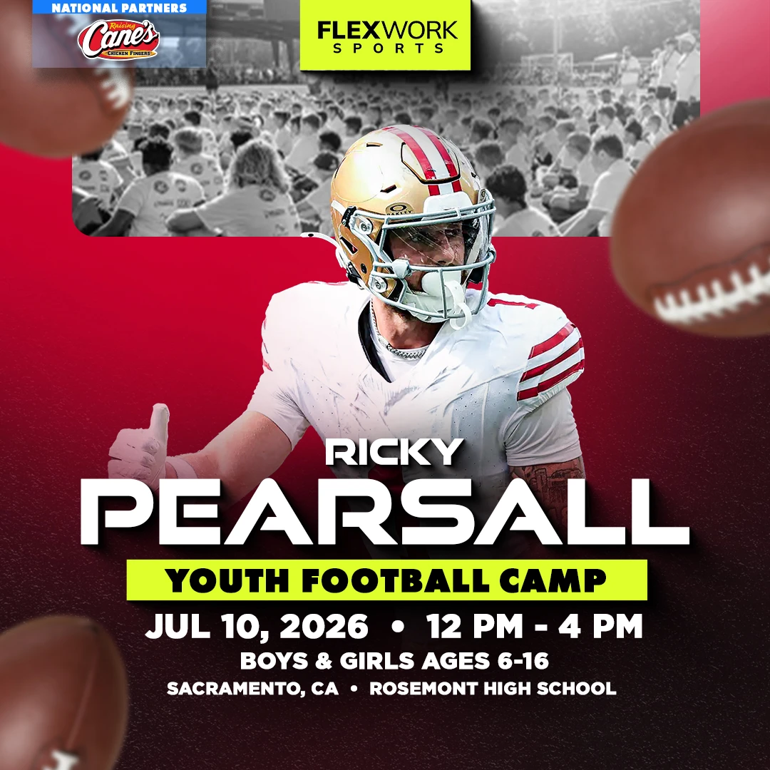 Over the course of the day, San Francisco star wide receiver Ricky Pearsall and our FlexWork Sports coaches will guide your child through an exciting, high-energy day designed around fun and unforgettable experiences on the field. Camp activities include interactive sessions, skill stations, and unique opportunities to connect with our athletes in ways that make the game come alive.