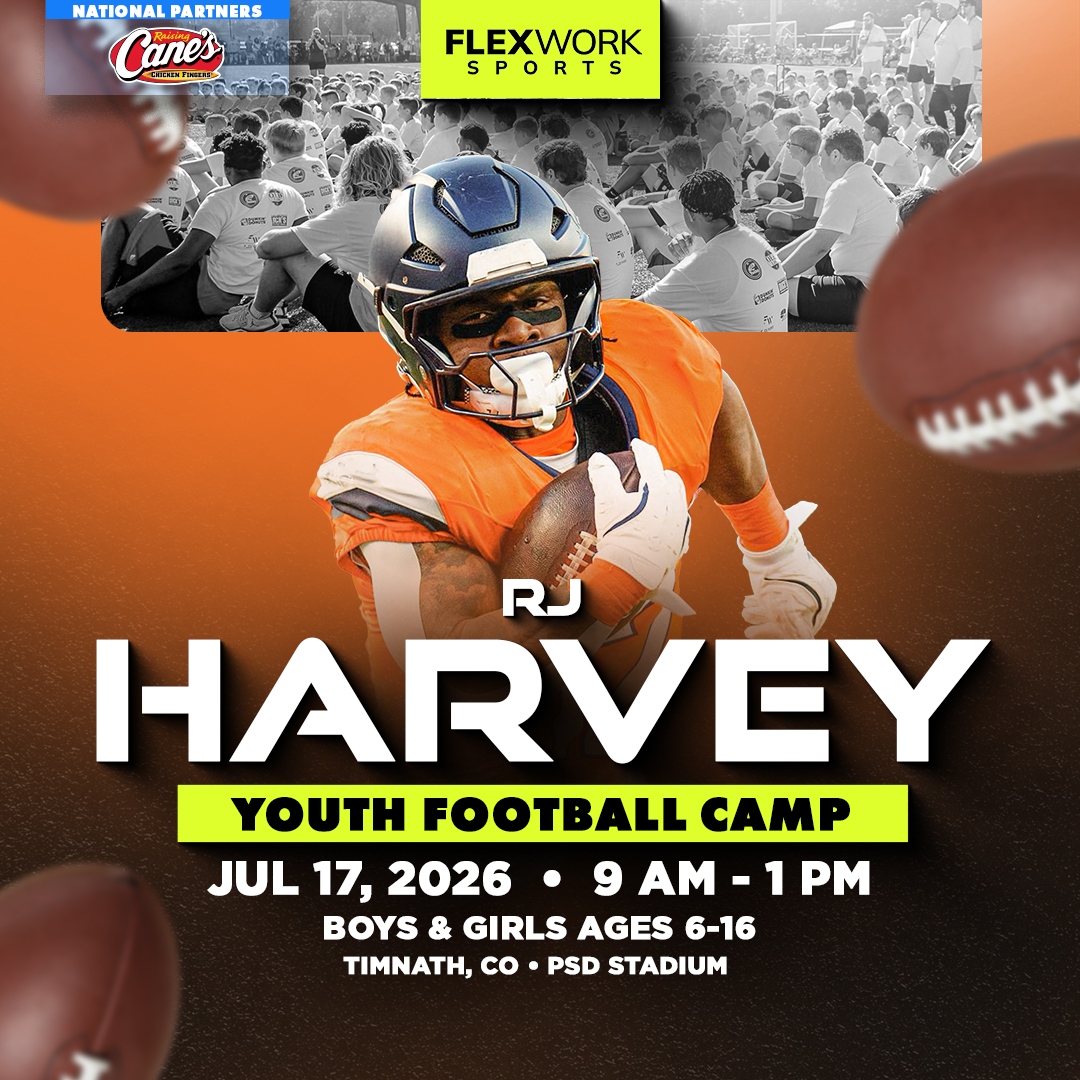 Over the course of the day, Denver star RB RJ Harvey and our FlexWork Sports coaches will guide your child through an exciting, high-energy day designed around fun and unforgettable experiences on the field. Camp activities include interactive sessions, skill stations, and unique opportunities to connect with our athletes in ways that make the game come alive.