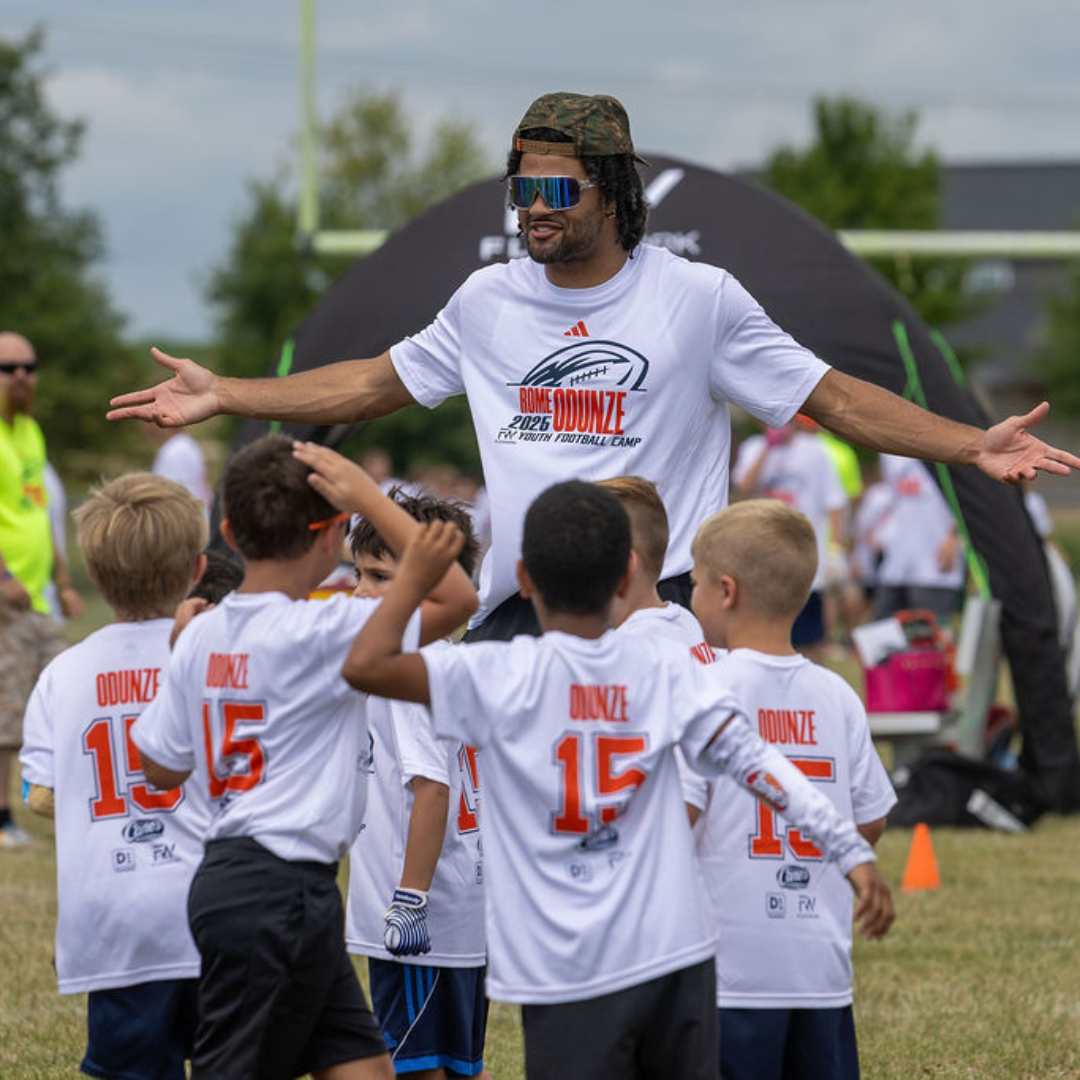 Over the course of the day, Chicago star wide receiver Rome Odunze and our FlexWork Sports coaches will guide your child through an exciting, high-energy day designed around fun and unforgettable experiences on the field. Camp activities include interactive sessions, skill stations, and unique opportunities to connect with our athletes in ways that make the game come alive.