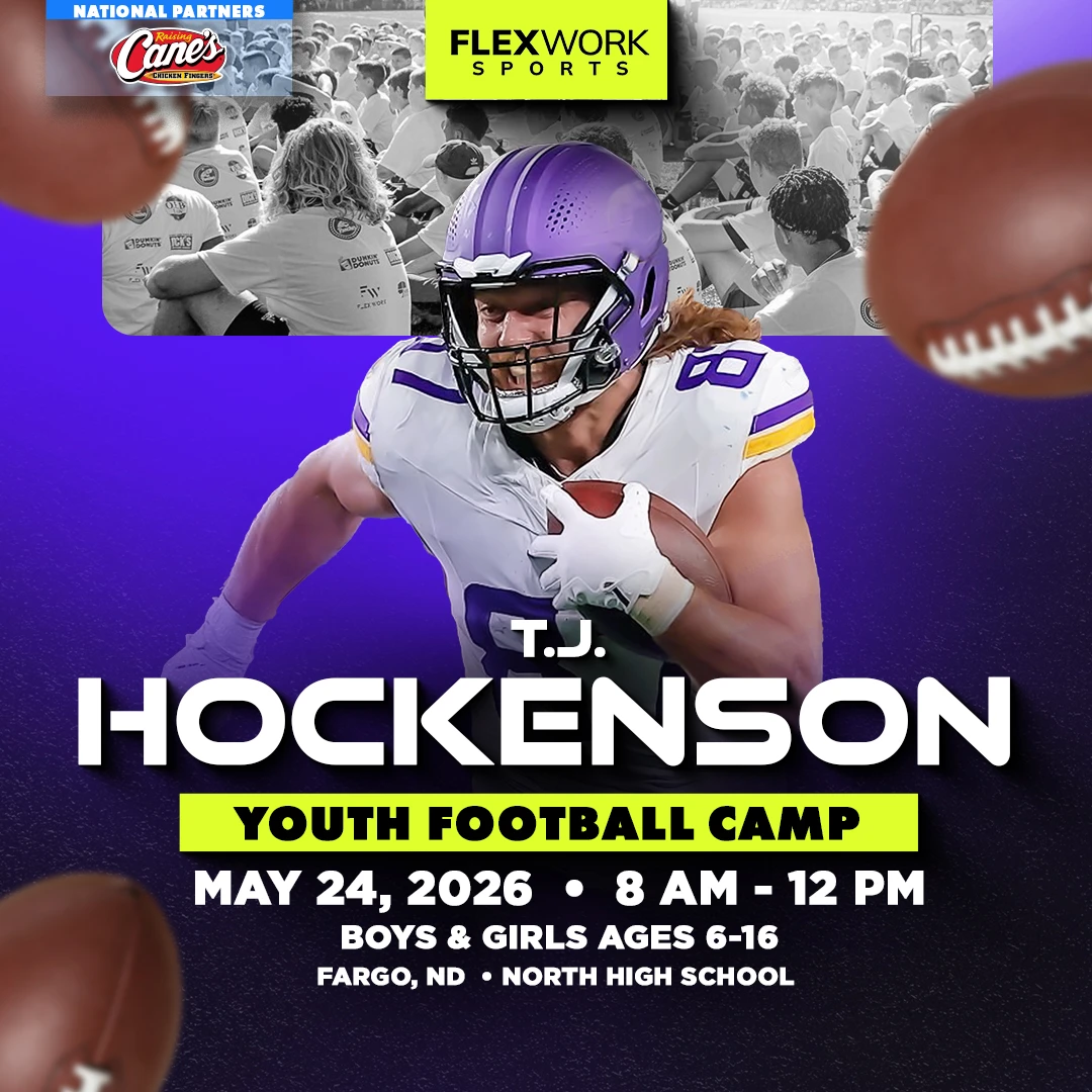 Over the course of the day, Minnesota star tight end T.J. Hockenson and our FlexWork Sports coaches will guide your child through an exciting, high-energy day designed around fun and unforgettable experiences on the field. Camp activities include interactive sessions, skill stations, and unique opportunities to connect with our athletes in ways that make the game come alive.