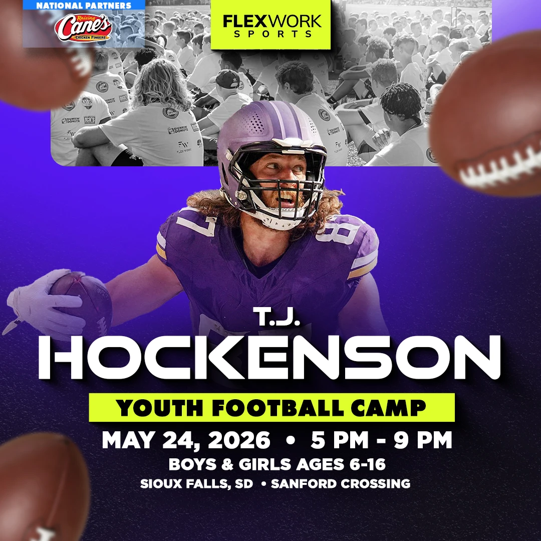 Over the course of the day, Minnesota star tight end T.J. Hockenson and our FlexWork Sports coaches will guide your child through an exciting, high-energy day designed around fun and unforgettable experiences on the field. Camp activities include interactive sessions, skill stations, and unique opportunities to connect with our athletes in ways that make the game come alive.
