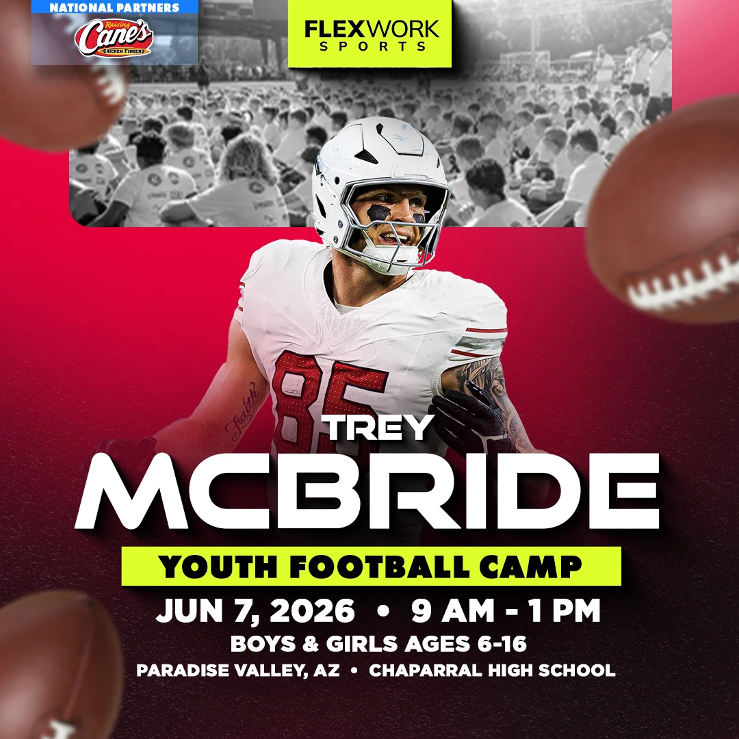 Over the course of the day, Arizona TE Trey McBride and our FlexWork Sports coaches will guide your child through an exciting, high-energy day designed around fun and unforgettable experiences on the field. Camp activities include interactive sessions, skill stations, and unique opportunities to connect with our athletes in ways that make the game come alive.