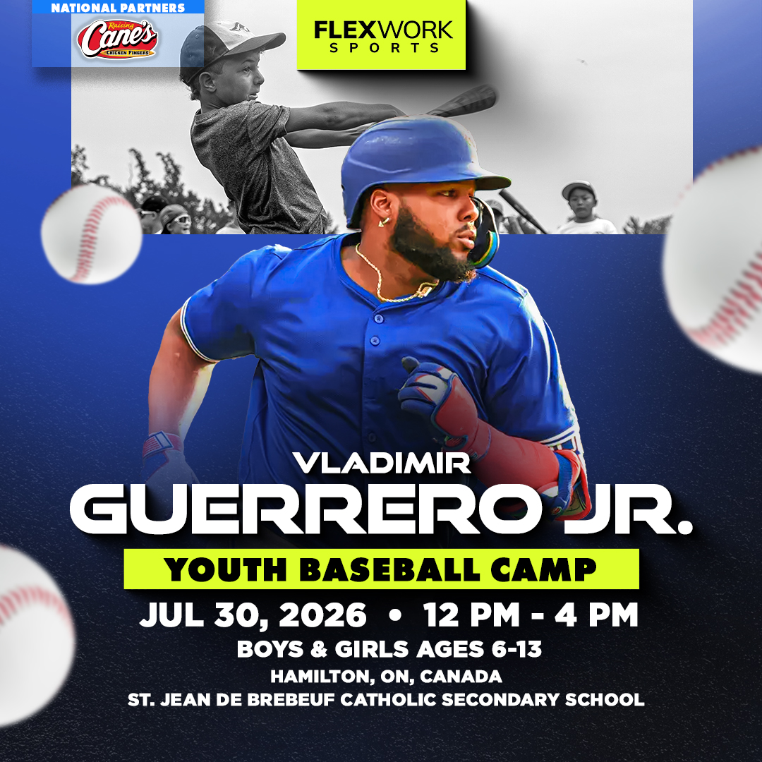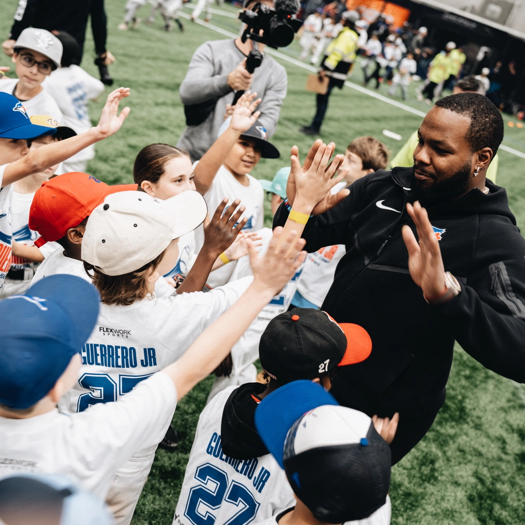 Over the course of the day, Toronto star 1B Vladimir Guerrero Jr. and our FlexWork Sports coaches will guide your child through an exciting, high-energy day designed around fun and unforgettable experiences on the field. Camp activities include interactive sessions, skill stations, and unique opportunities to connect with our athletes in ways that make the game come alive.