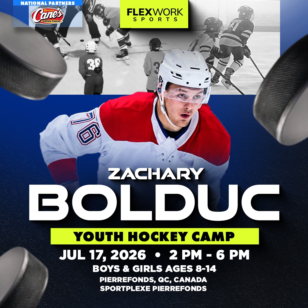 Over the course of the day, Montreal star RW Zachary Bolduc and our FlexWork Sports coaches will guide your child through an exciting, high-energy day designed around fun and unforgettable experiences on and off the ice. Camp activities, powered by Pro Ambitions hockey, include general skill development, skating, stick handling, & shooting in a fun innovative training environment. Additionally, there will be unique opportunities to connect with our athletes in ways that make the game come alive.