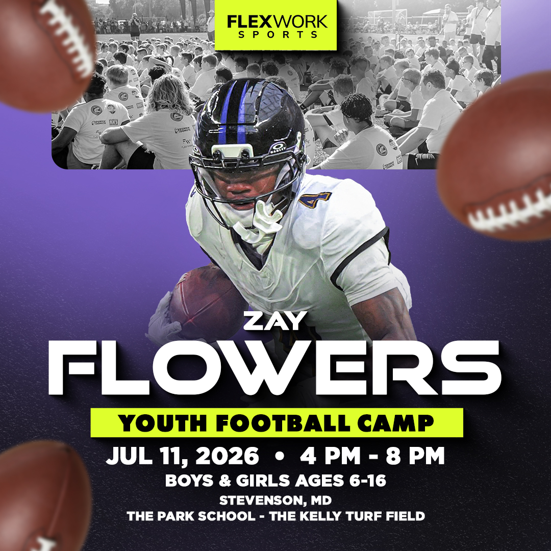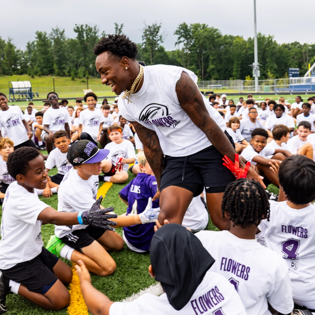 Over the course of the day, Baltimore star wide receiver Zay Flowers and our FlexWork Sports coaches will guide your child through an exciting, high-energy day designed around fun and unforgettable experiences on the field. Camp activities include interactive sessions, skill stations, and unique opportunities to connect with our athletes in ways that make the game come alive.